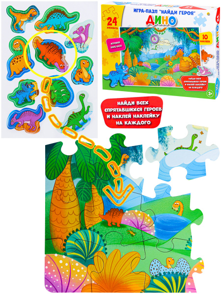 Игра-Пазл, Найди героя 'Дино', 10 наклеек, ИН-8323