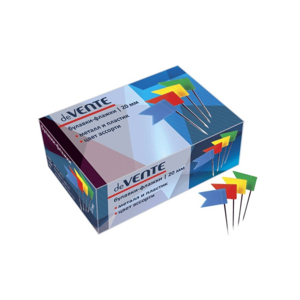 Булавки офисные 'deVENTE' с пластиковым флажком 23 мм, 50 шт в картонной коробке, ассорти, 4130500
