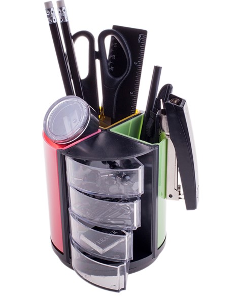 —Настольный органайзер OfficeSpace 'Витраж', 11 предметов, вращающийся, черный;цветной, SS158_3183