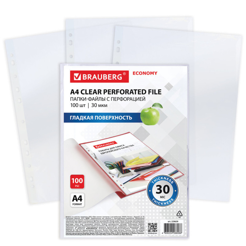 Файлы А4 Brauberg 35 мкм (100 шт;уп), 221710