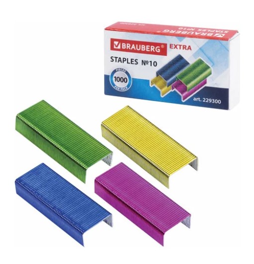 —Скобы для степлера цветные №10, 1000 штук, BRAUBERG 'EXTRA', до 20 листов, 229300