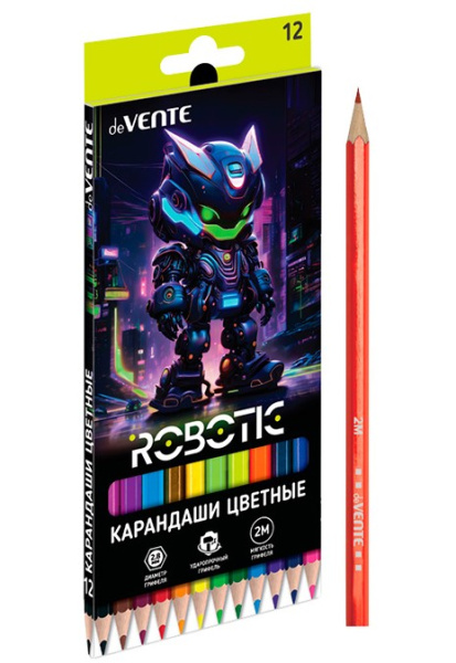 —Карандаши цветные 'deVENTE. Robotic' 12 цветов, 2М, диаметр грифеля 2,8 мм, шестигранные, 5022539