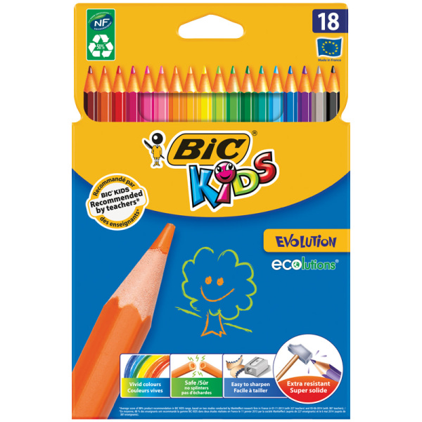 —Карандаши 18 цв. Bic 'Evolution', пластик., заточен., картон. уп., европодвес, 937513