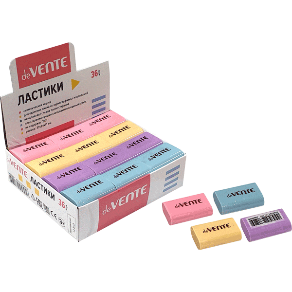 —Ластик 'deVENTE. Pastel' синтетический каучук, прямоугольный цветной, 37x24x11 мм, 8030907