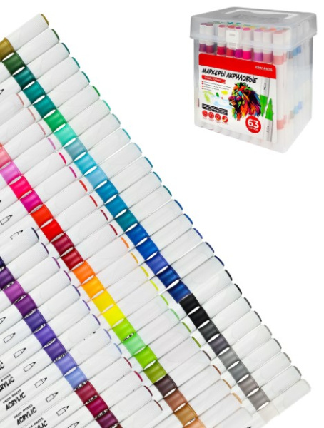 Акриловые маркеры двустор, набор 63 шт, 2 белых цв, 14 металлик цв, МП-4866