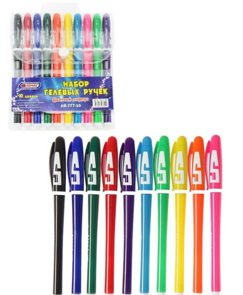 —Набор гелевых ручек ASMAR , 10 цветов , цветной корпус, AR-777-10