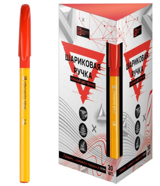 Ручка шариковая, 'Феникс+' корпус оранжевый, пластик, 1.0 мм, красная, 64129