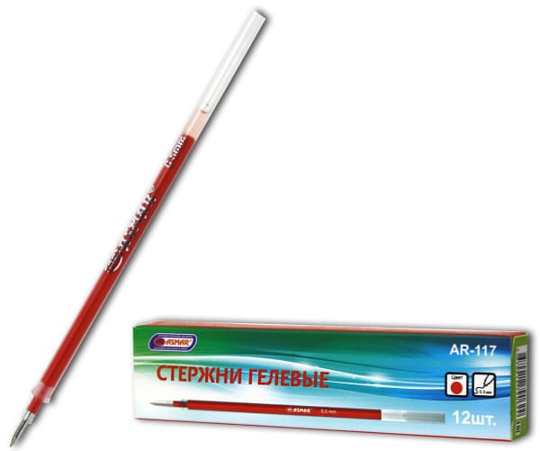 —Стержень гелевый красный, 138 мм., 0,5 мм., в упаковке, AR-117;КРАСНЫЙ