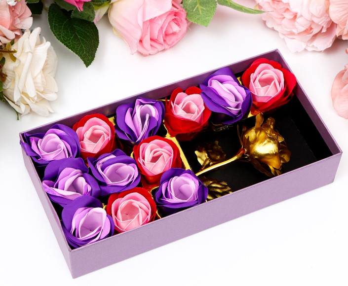 —Мыльные розочки цветных оттенков и золотая роза, (12 шт;уп), 6962320