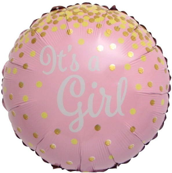 Шар фольга Agura  (18'';46 см) Круг, С Рождением Девочки! (золотое конфетти), Розовый, 1 шт. 15492