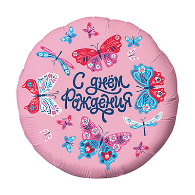 Шар фольга 'Круг' 18;46', 'С днём рождения!'(бабочки)756614