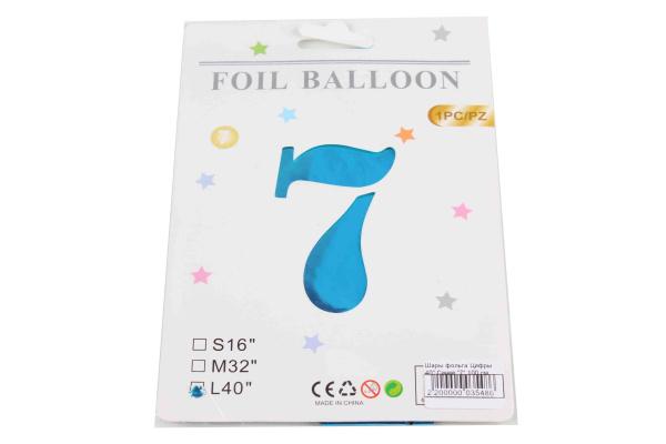 Шары фольга Цифры 40' Синий '7' 100 см.