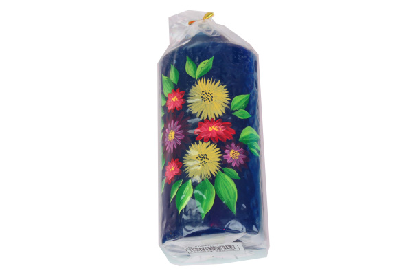 —Свеча пеньковая декоративная ООО Свеча 'Цветы синие' 55х130 мм. ручная роспись