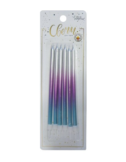 —Набор свечей 'Градиент', серебро-розовый-синий , с держателем, 183550