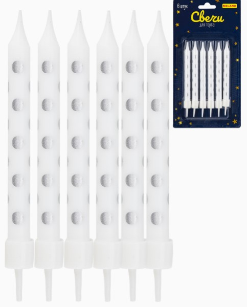 Свечи для торта на подставках 'Серебристые точки ' 0.7~7 +2см. 6шт. С-2017