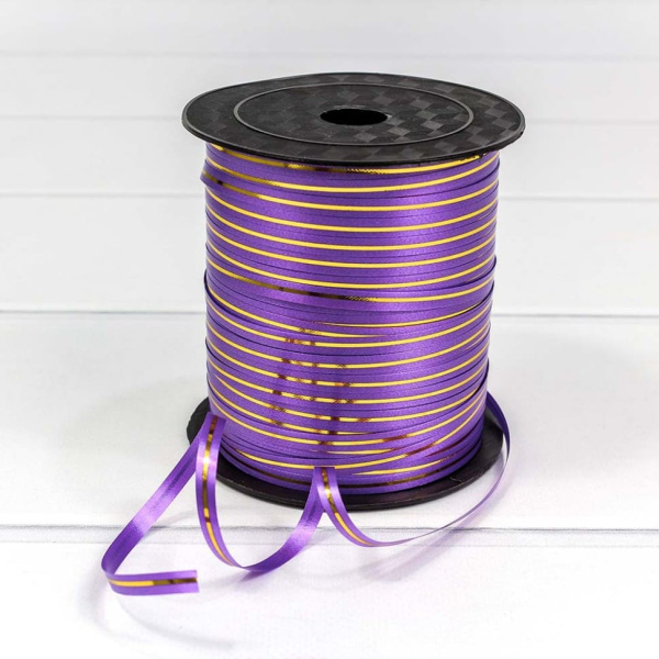 Лента OMG 'Сиреневая с золотой полосой', поли-н, в бобине, 0,5 см.х 228 м., , OM500580;2