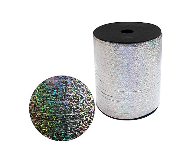 Лента для шаров, KWELT, 5 мм х 500 м, голография серебро, К-16974