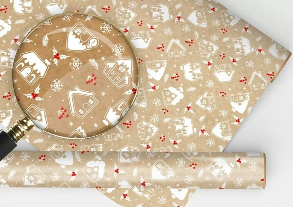 —Упаковочная крафт бумага пряничные домики и ягоды, 15.25.02545
