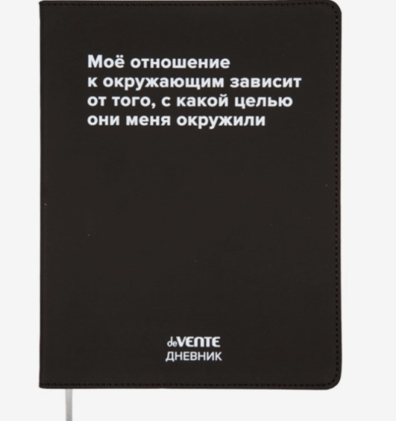 Дневник 'deVENTEДневник 'deVENTE. Моё отношение к окружающим' универсальный блок, 48 листов, белая бумага 80 г;м², печать в 1 краску, гибкая обложка из искусственной кожи, шелкография, отстрочка, 1 ляссе Моё отношение к окружающим' универсальный блок, 48 листов, белая бумага 80 г;м², п
