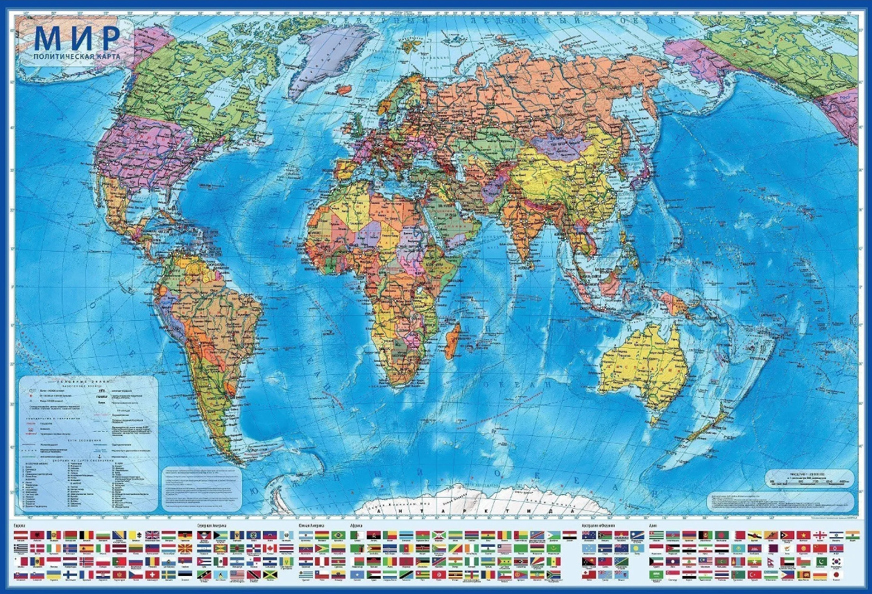 Карта географическая Мир Политический Карта Настенная 1-21,5 м. (157 х 107 с ламинацией), КН063