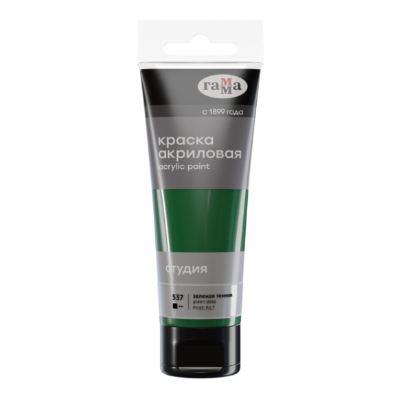 —Краска акриловая художественная Гамма 'Студия' зеленая темная, 75мл, 280220537