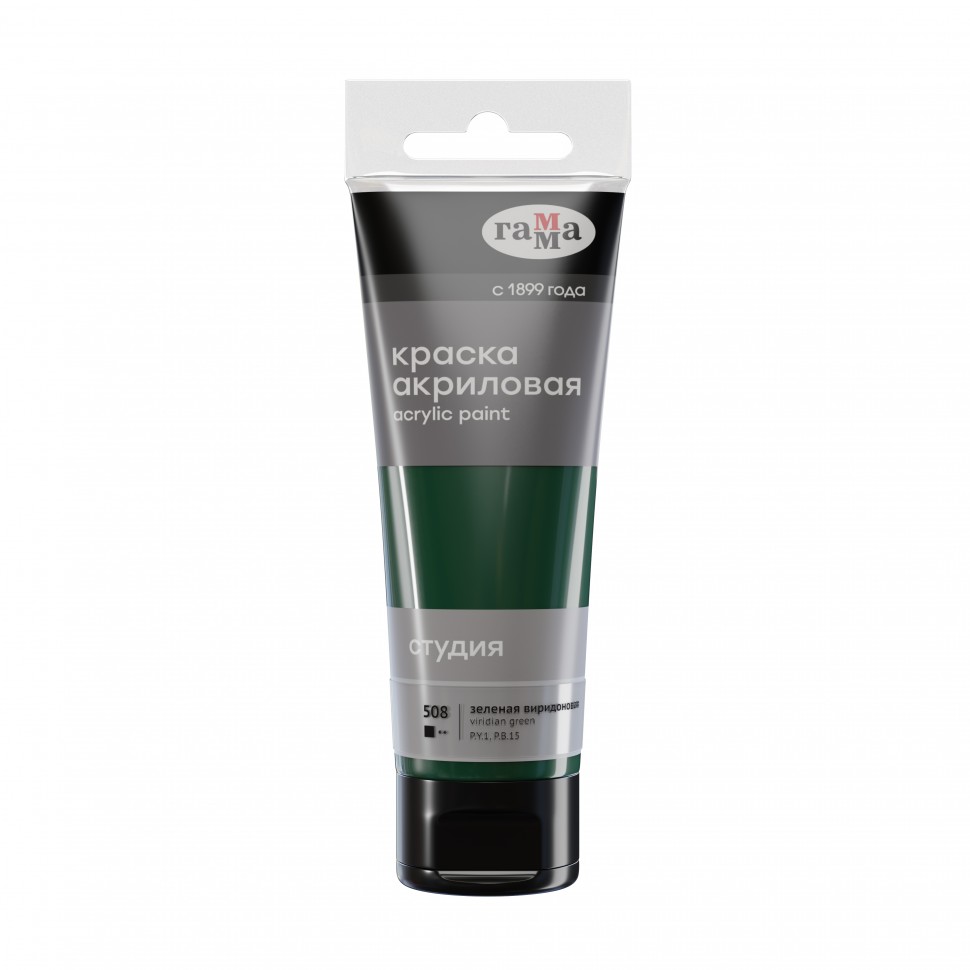 Краска акриловая художественная Гамма 'Студия' зеленая виридоновая, 75мл, 280220508