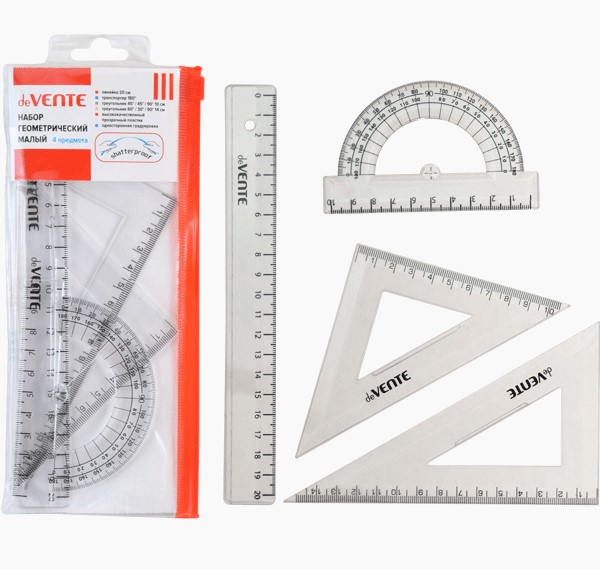 —Набор геометрический 'deVENTE' малый, 4 предмета (линейка 20 см, 2 угольника, транспортир), 5092000