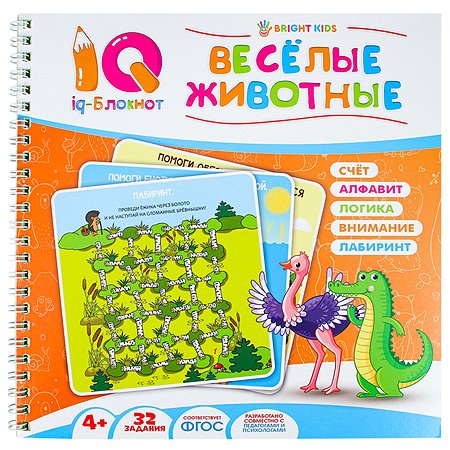 —'IQ-блокнот' ВЕСЕЛЫЕ ЖИВОТНЫЕ (РБ16-6926) 215~215, полноцв 16л+обл, бл офс100г обл мел карт, гребень