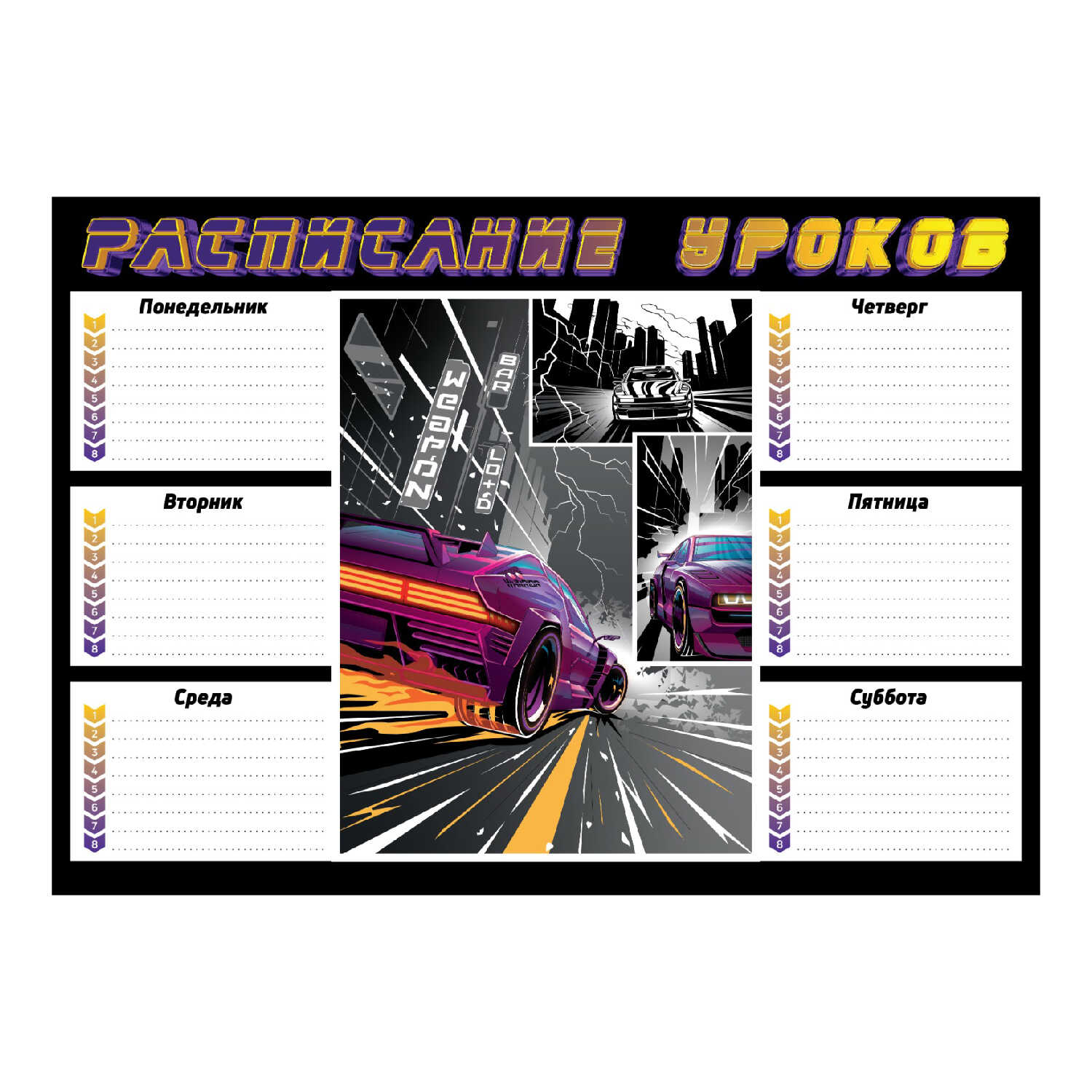 Расписание уроков А4, мелованный картон 235 г;м², полноцветная печать, выборочный УФ-лак, 67664