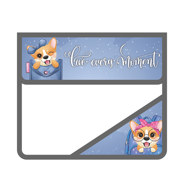 Папка для тетрадей А5 пластик, на липучке, 2 СЕКЦИИ, клапан + уголок, КОРГИ В КАРМАНЕ 2023, ПМ-А5-36