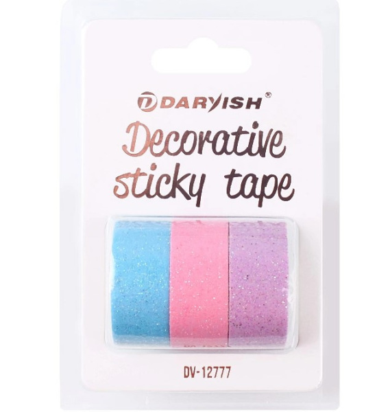 —Лента декоративная липкая 'Darvish', 15 мм х 3 м, (3 шт;уп), блёстки ассорти, DV-12777