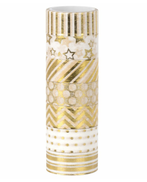 —Клейкие WASHI-ленты для декора с фольгой ЗОЛОТИСТЫЕ, 15 мм х 3 м, 7 шт, ОСТРОВ СОКРОВИЩ, 661712