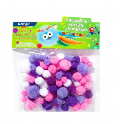 Декоративный материал Alingar, Ягодно розовые цвета,  пушистые помпоны, 80 шт, AL9033