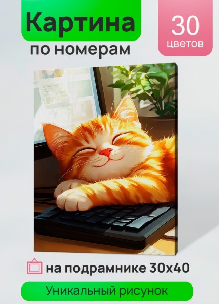 —Холст с красками 30x40 см по номерам (в коробке) (30 цв.) Спящий милый коти, ХК-3915