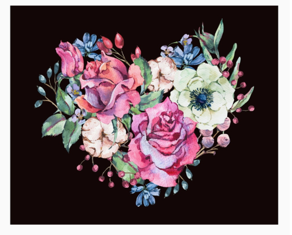 Холст с красками. 30х40 см . Сердце из цветов. арт. Х-7106