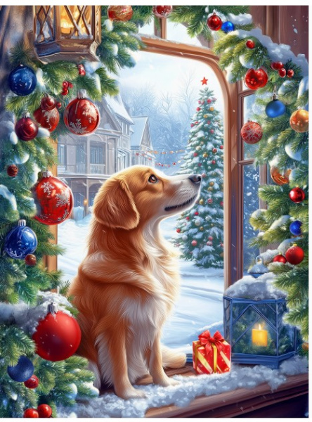 Холст с красками 30х40 см по номерам в коробке (30 цв.) Пёсик ждёт Новый год, ХК-0521