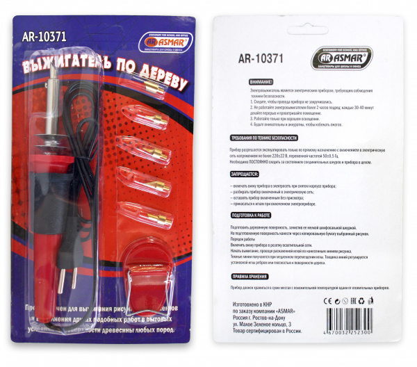 —Прибор для выжигания по дереву 'AR', картон, 5 насадок, держатель, AR-10371